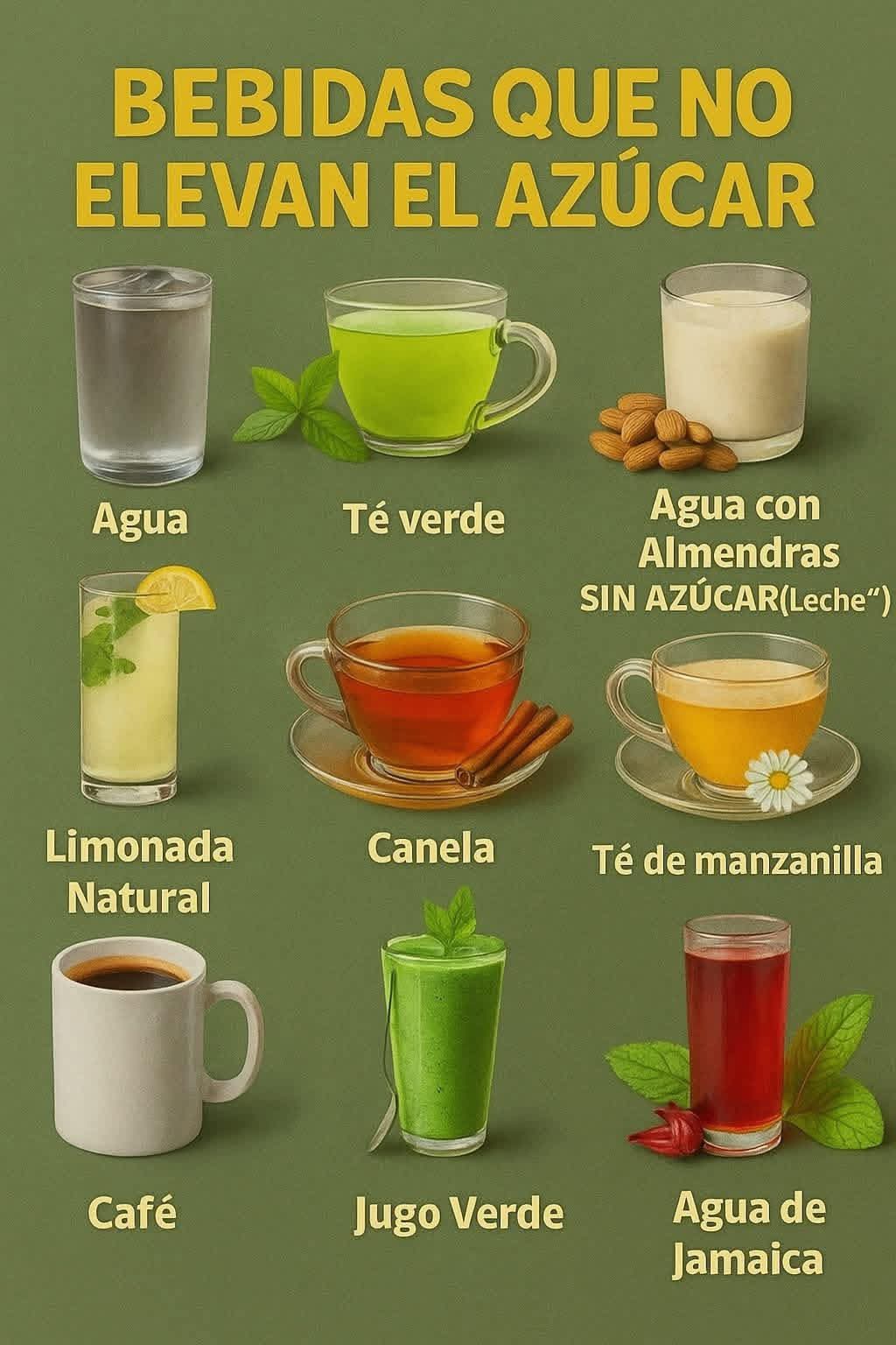 Bebidas con edulcorantes naturales como stevia o monk fruit (no elevan el azúcar, pero conviene no abusar).